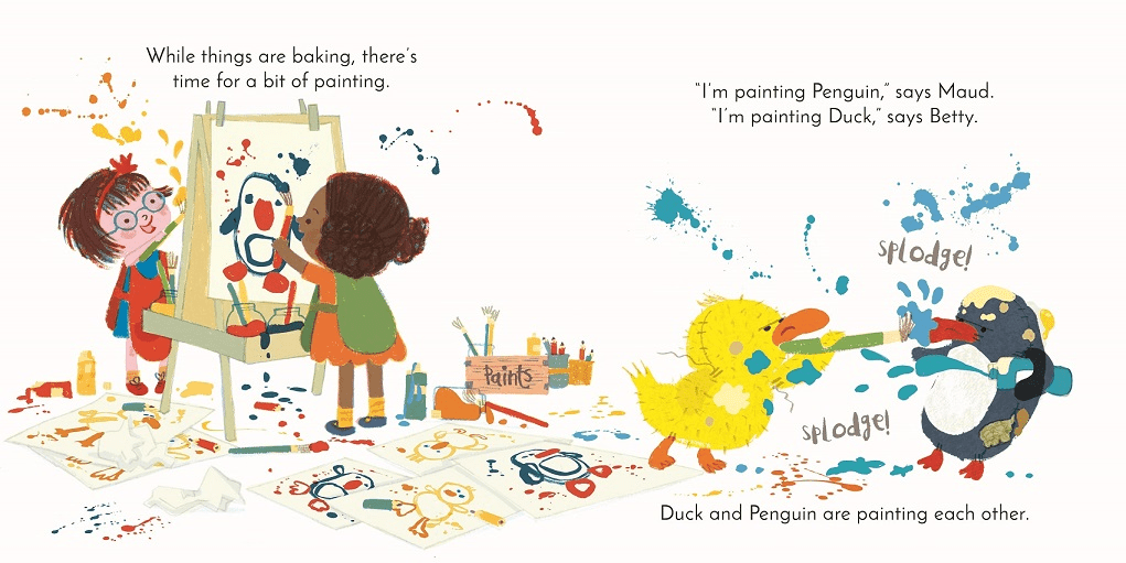Alors qu’elles s’amusent comme des petites folles Ă leurs jeux prĂ©fĂ©rĂ©s sur la page de gauche, il semblerait qu’il n’en soit pas de mĂȘme pour les doudous sur les pages de droite.