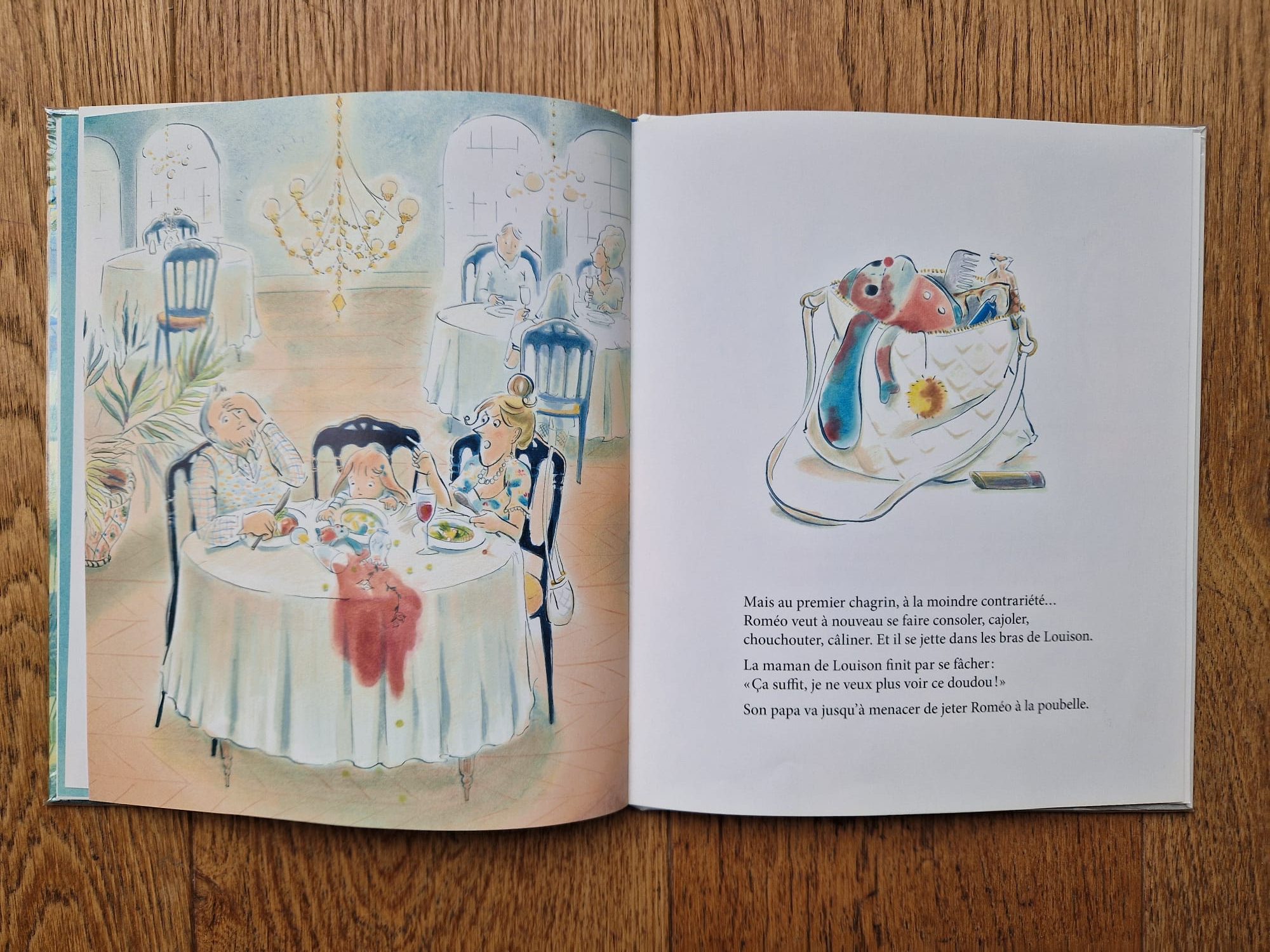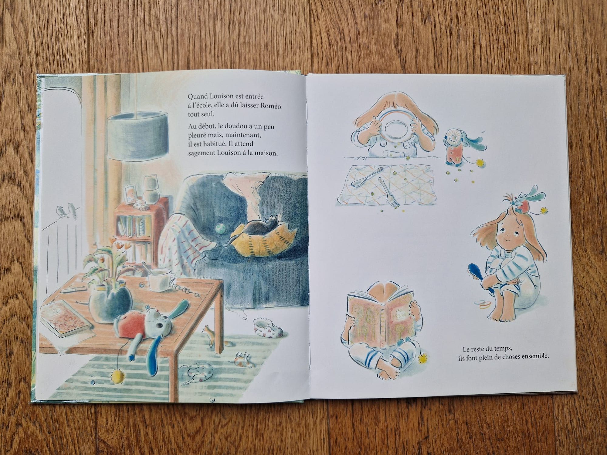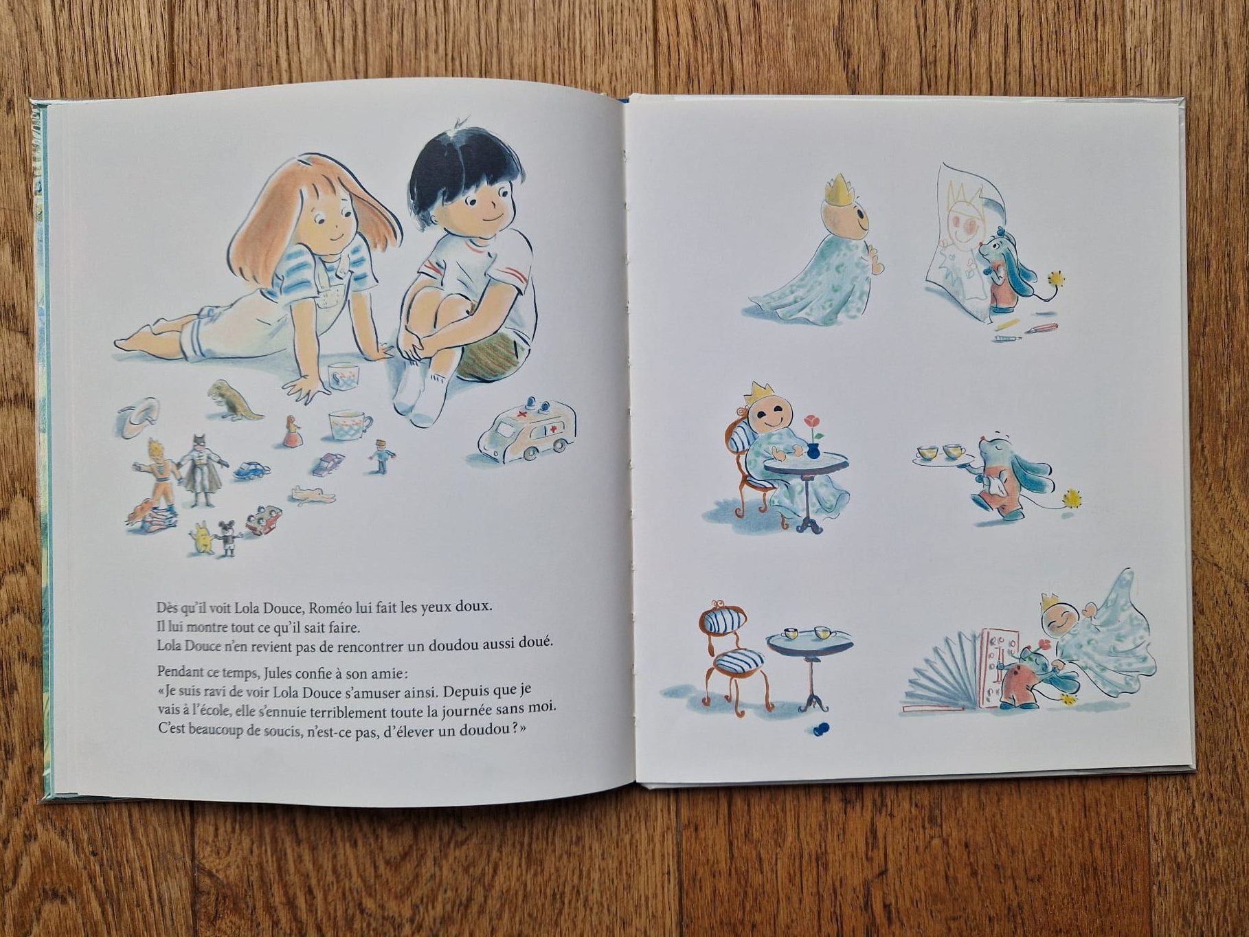 Depuis que Roméo est bébé, Louison s’occupe de lui. Louison a grandit mais Roméo a encore besoin d’elle, il veut la garder pour lui seul comme quand elle était petite. C’est très amusant d’avoir inversé les rôles doudou-enfant.