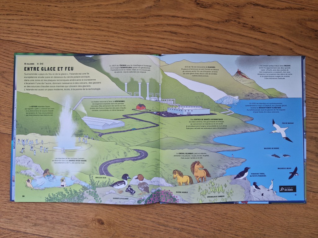 Un sujet par double page, avec en bonus un cherche et trouve, qui ravit toujours les enfants !