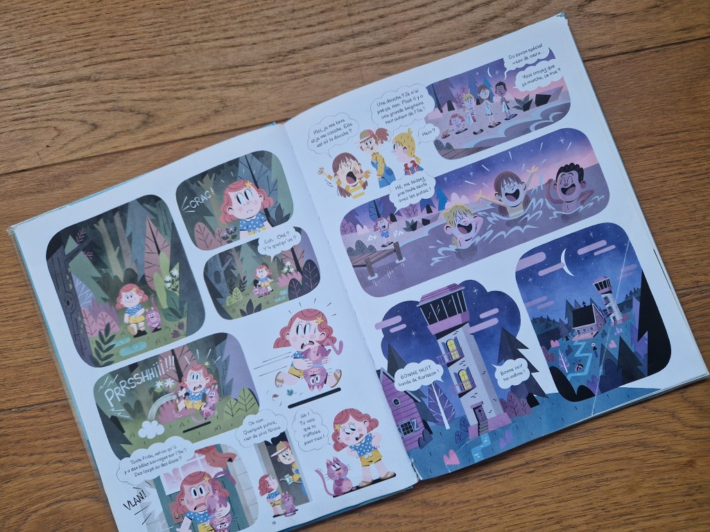 Les illustrations colorées d’Aurore Damant (La famille royale) et la mise en page de la BD convient bien à cette histoire trépidante !