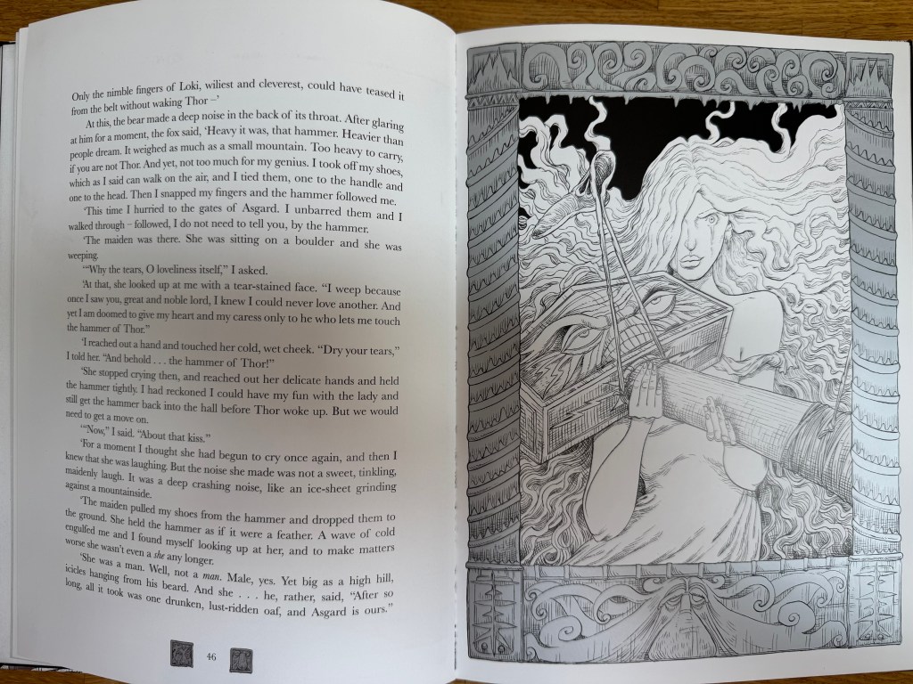 Odd, le petit humain fragile va aider les dieux dans leur quĂȘte afin que le printemps se rĂ©installe chez les humains. Le livre est vraiment beau avec ses illustrations en Noir et Blanc avec de l’argent qui rappelle le givre. Ces illustrations me rappellent des gravures ou encore des cartes Ă gratter.