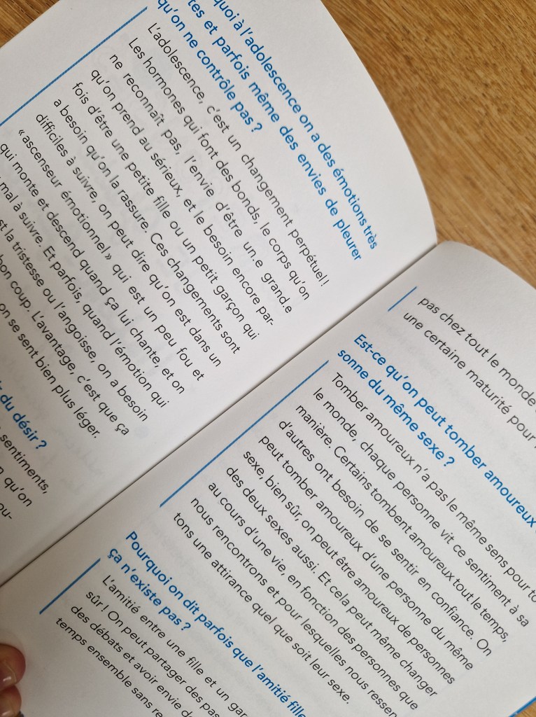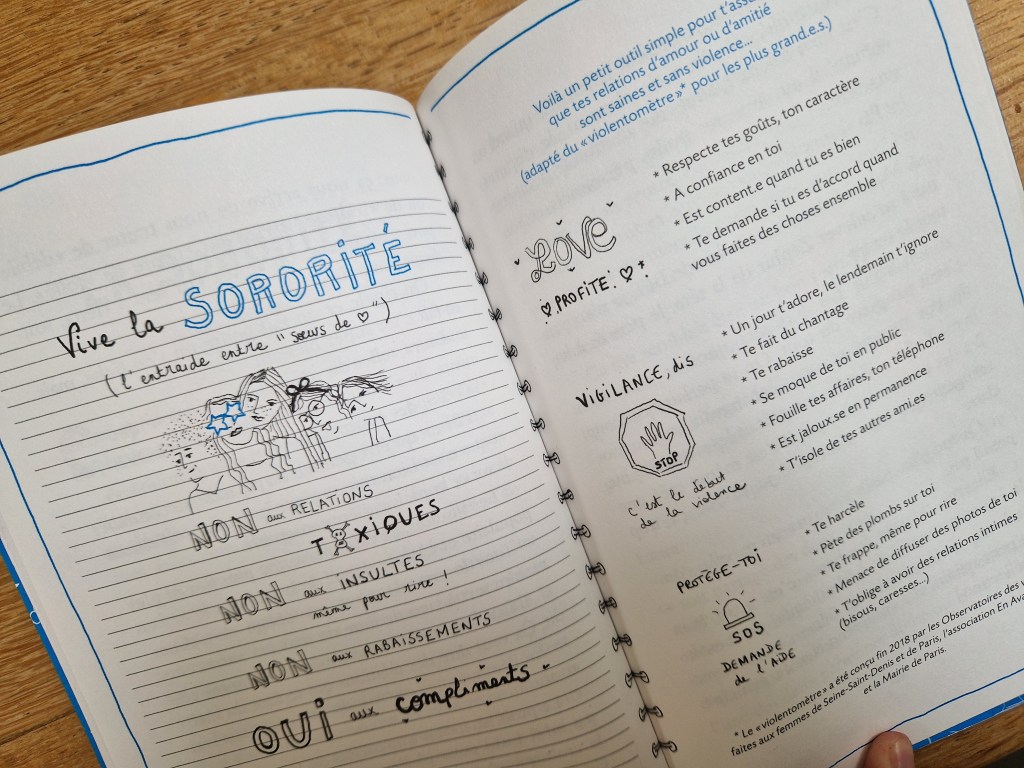 Un petit livre à hauteur de pré-ados, qui alterne roman et journal intime. Facile à lire, facile à comprendre avec des conseils pour y voir plus clair à cet âge un peu (beaucoup parfois) compliqué. On en profitera pour aborder aussi le consentement et l’importance de rester soi-même.