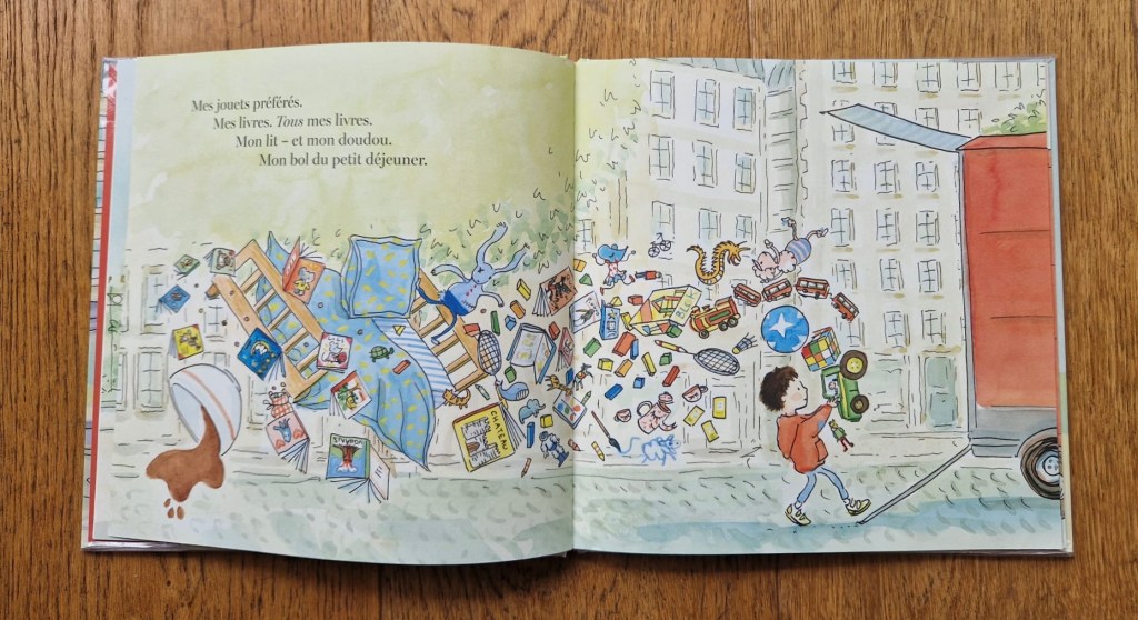 Un petit garçon va empiler affaires et souvenirs dans le gros camion.