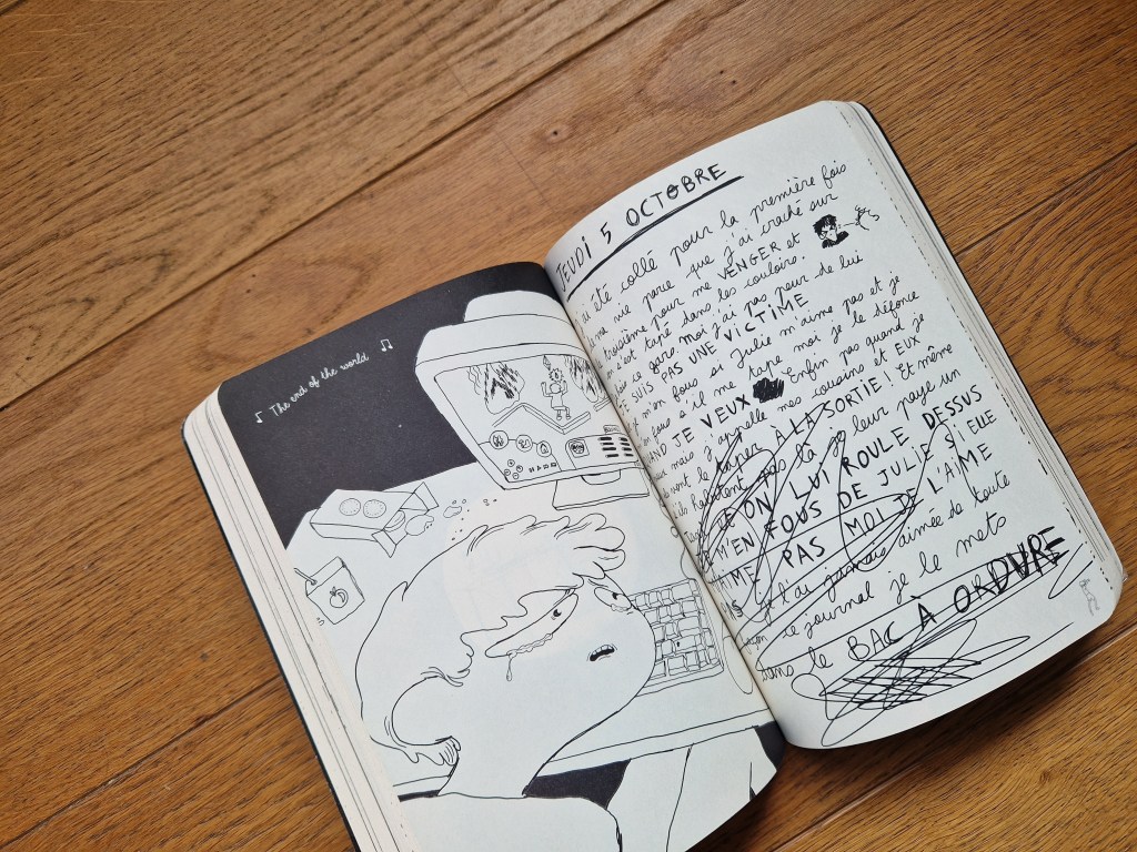 Au niveau graphique, on est sur du noir et blanc. Moi qui en général trouve cela assez triste et plat, j’ai été agréablement surprise du dynamisme ressenti en lisant ce roman. Avec une seule couleur, elle réussit à transmettre l’ennui, la joie, la tristesse et la colère avec brio.