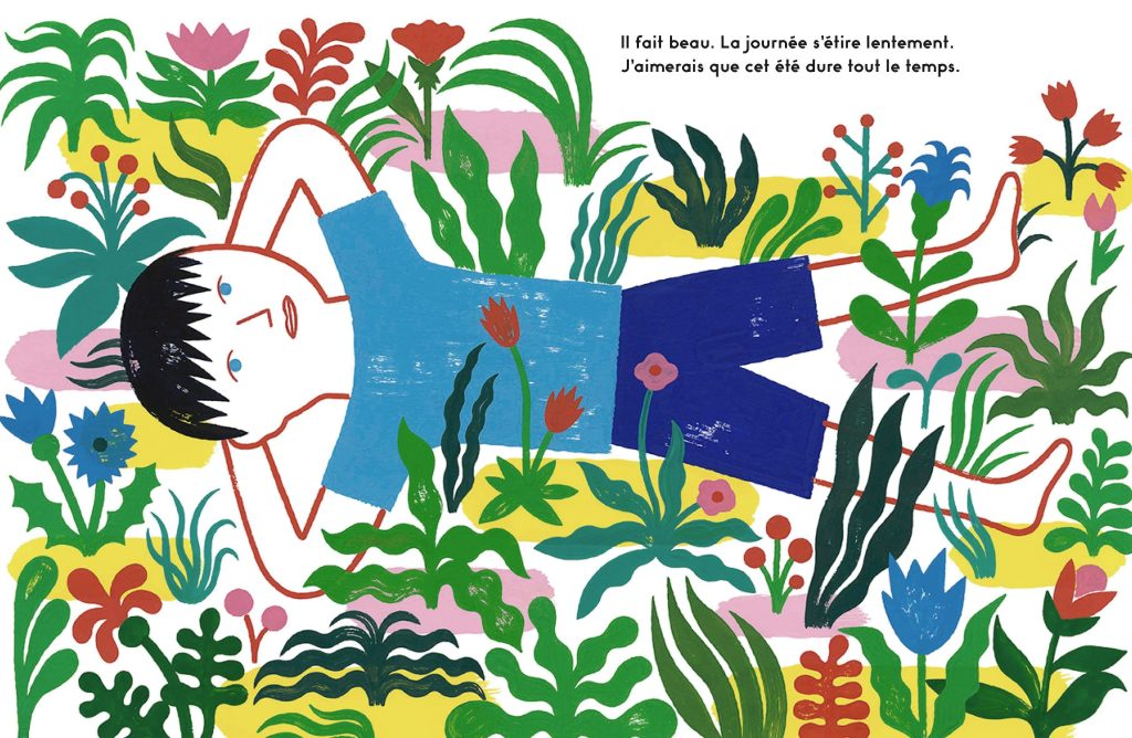 Si ses illustrations vous plaisent, vous pouvez même vous en offrir une signée, c’est par ici! Comme celle nommée « enfant dans l’herbe » qui vient tout droit de l’album du jour.