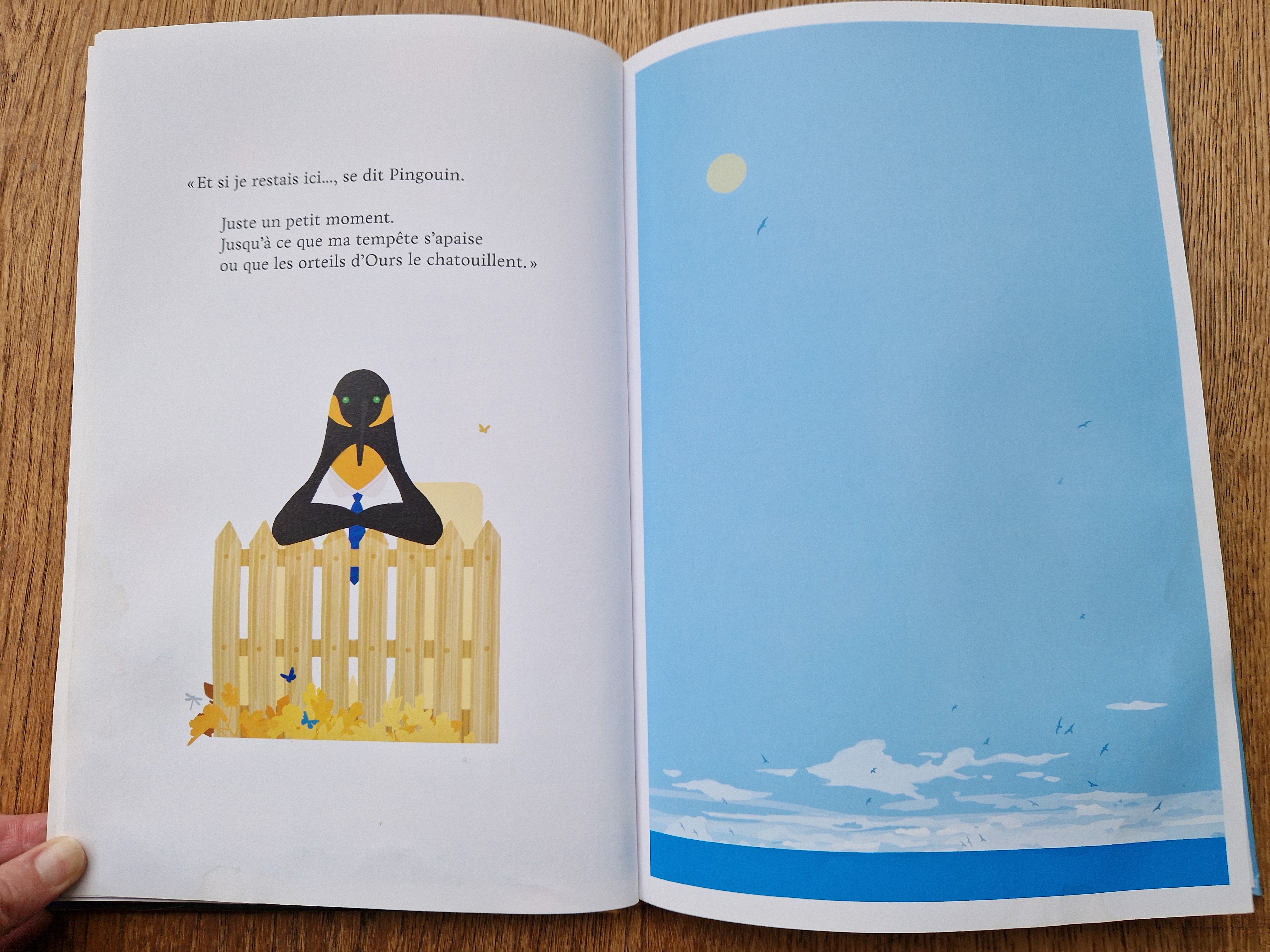 Mais Ours, lui, ne ressent rien de tout ça. Qu’à cela ne tienne. Pingouin décide néanmoins de rester pour l’été.