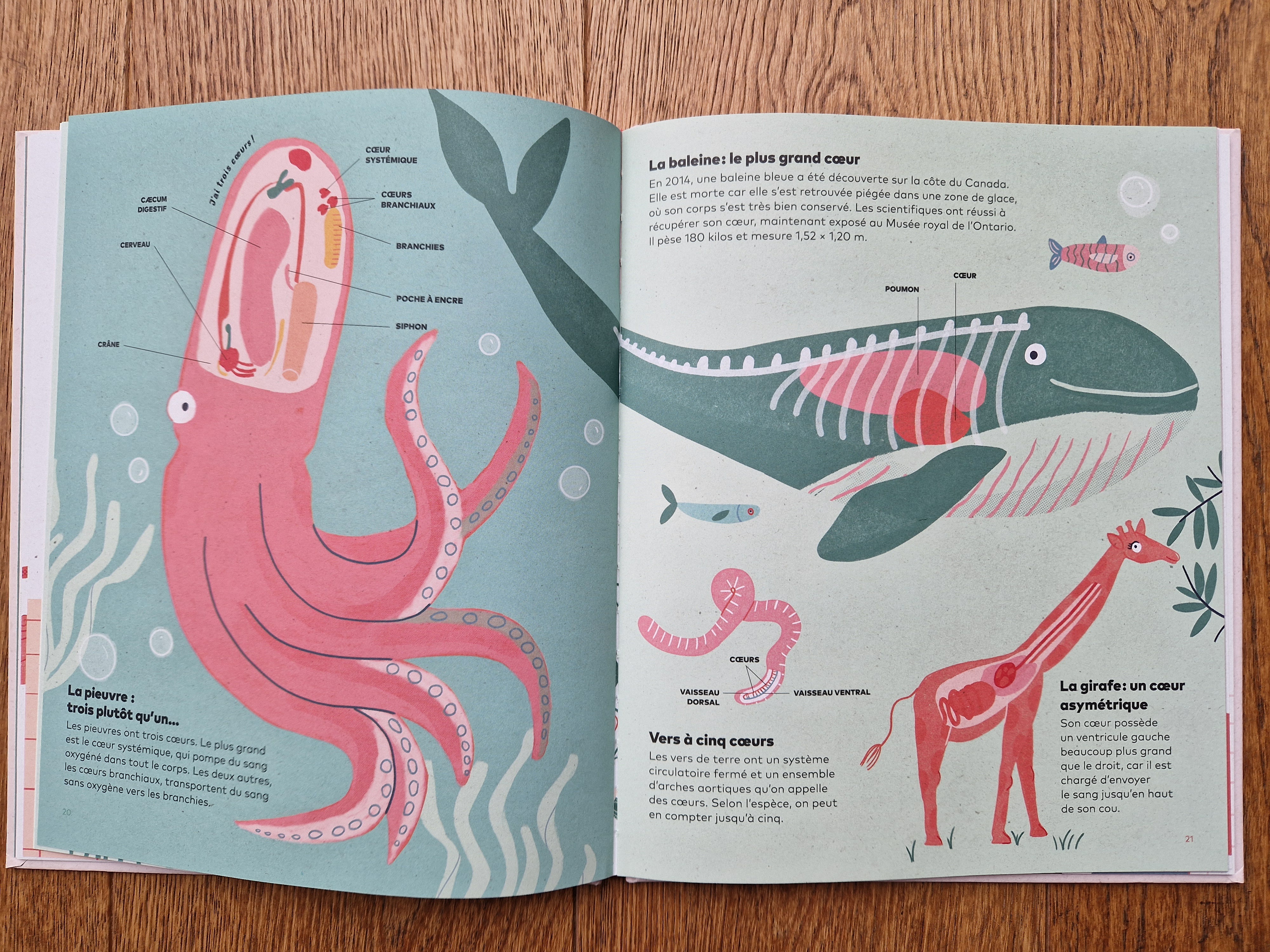 La science : avec des faits fascinants sur le cœur des animaux (saviez-vous que celui de la baleine bleue est aussi grand qu’une voiture ?) et l’anatomie humaine.