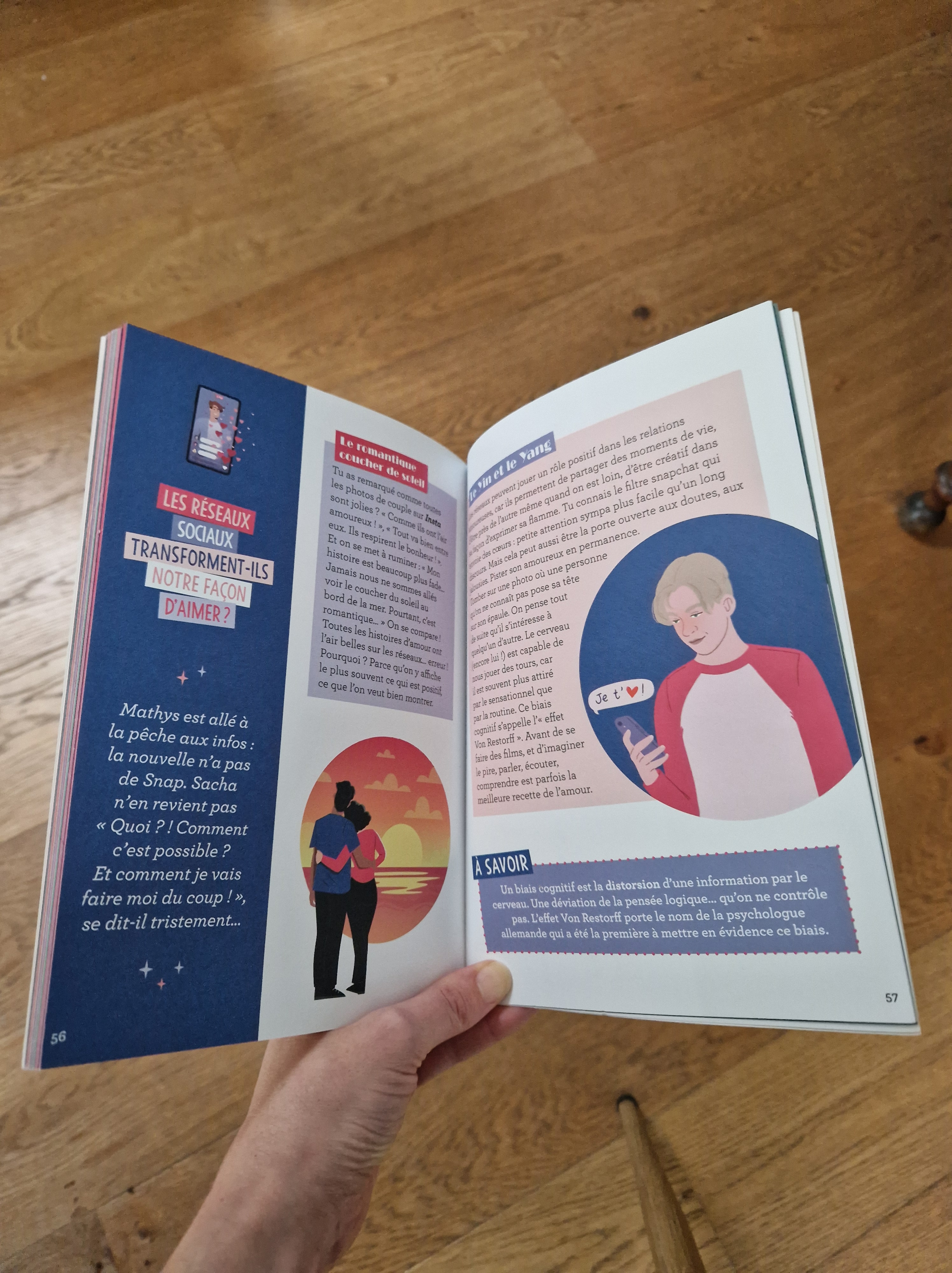 Car l’adolescence est souvent le moment des premiers émois, parfois un peu déstabilisants pour les enfants. Sylvie Thirion explique avec beaucoup de clarté que nos réactions (mains moites, cœur qui bat, pensées obsédantes) ne sont pas bizarres, mais le résultat d’un cocktail chimique fascinant : dopamine, ocytocine, adrénaline… Comprendre la science permet de mettre des mots sur des sensations parfois envahissantes.