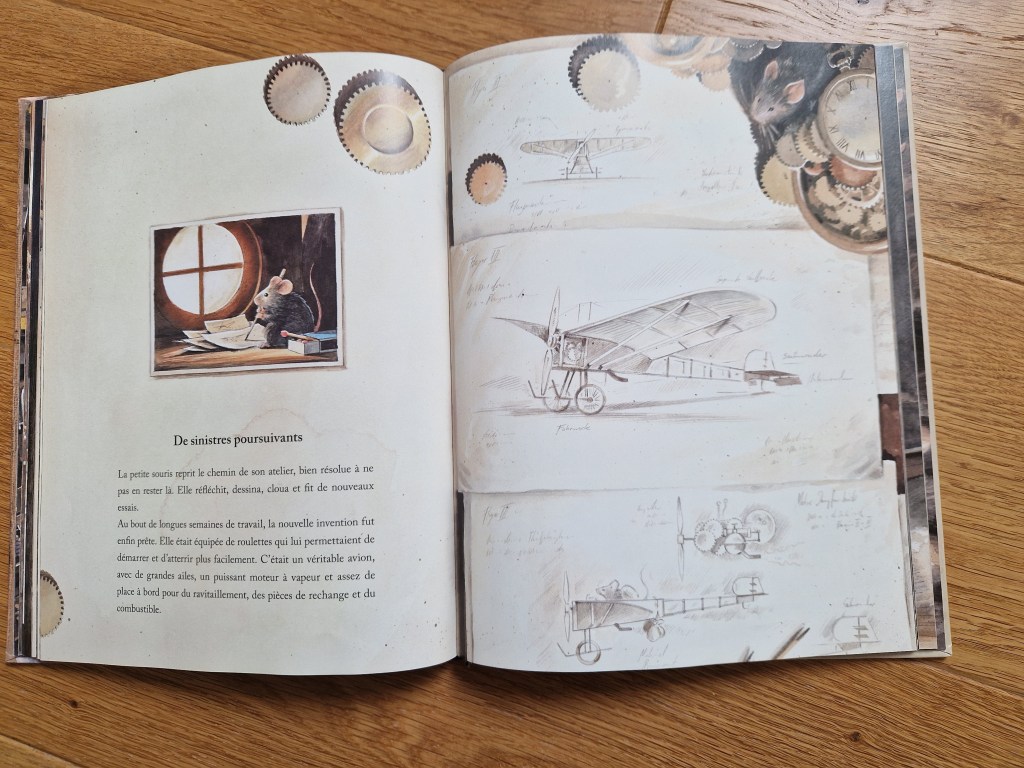 Les illustrations des albums de Torben Kuhlman sont tellement belles que je peux jamais résister. Lindbergh est d »ailleurs son premier. Véritable pépite graphique, cet ouvrage est bien plus qu’une simple histoire de souris volante ou d’aviation : c’est une véritable épopée à hauteur de rongeur.