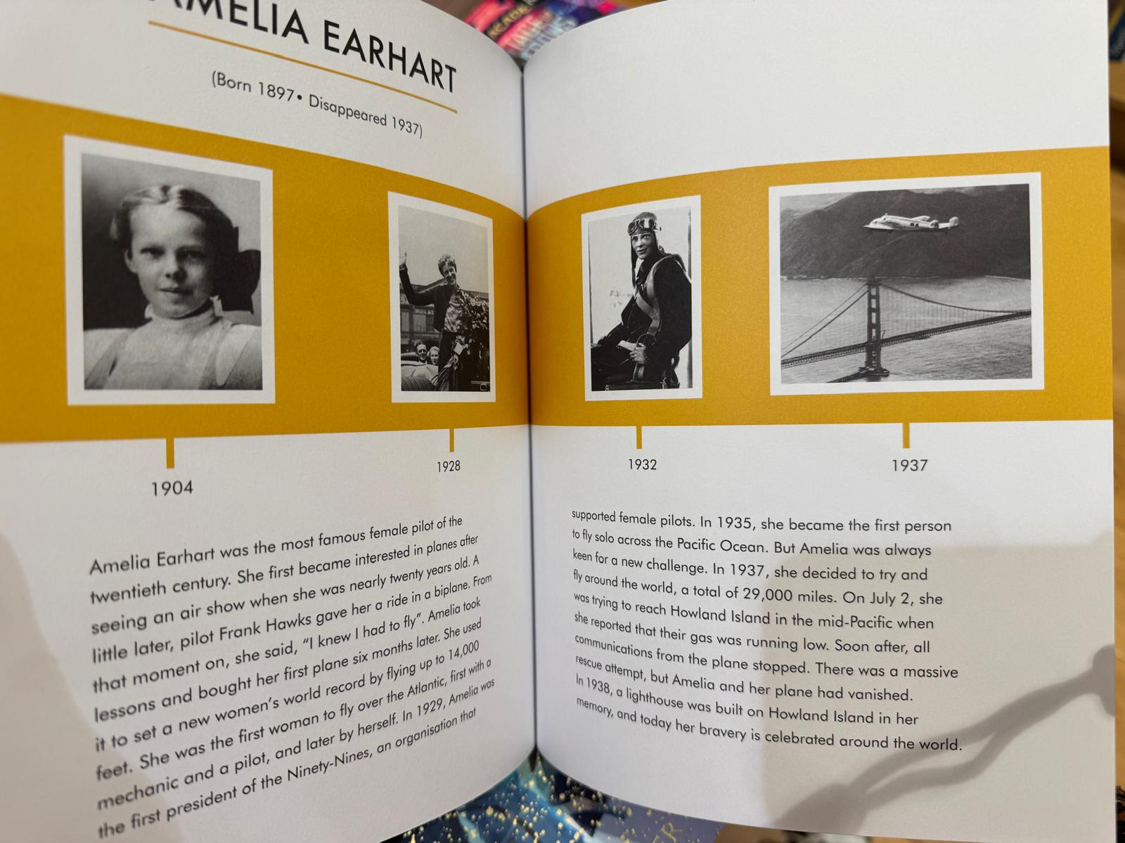 La collection Petite & Grande / Little People, BIG DREAMS a pour vocation de raconter aux plus jeunes comment de petits enfants, avec leurs doutes et leurs passions, sont devenus des figures emblĂ©matiques de l’Histoire, de l’art, de la science ou du sport. De Rosa Parks Ă Taylor Swift, chaque album explore un destin unique avec un message clair : tout commence par un rĂȘve. Aujourd’hui, nous avons choisi de vous prĂ©senter celle qui a fait du ciel son terrain de jeu : Amelia Earhart.