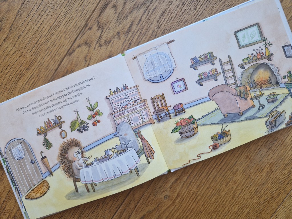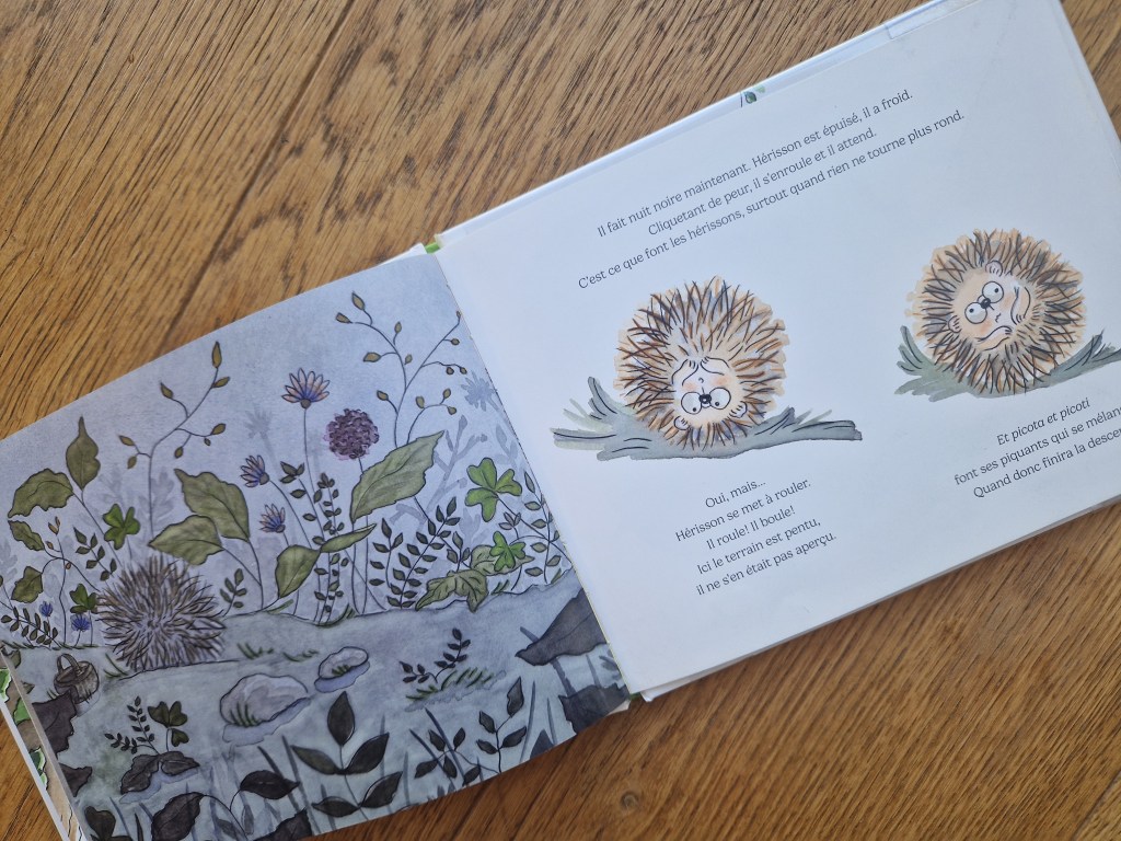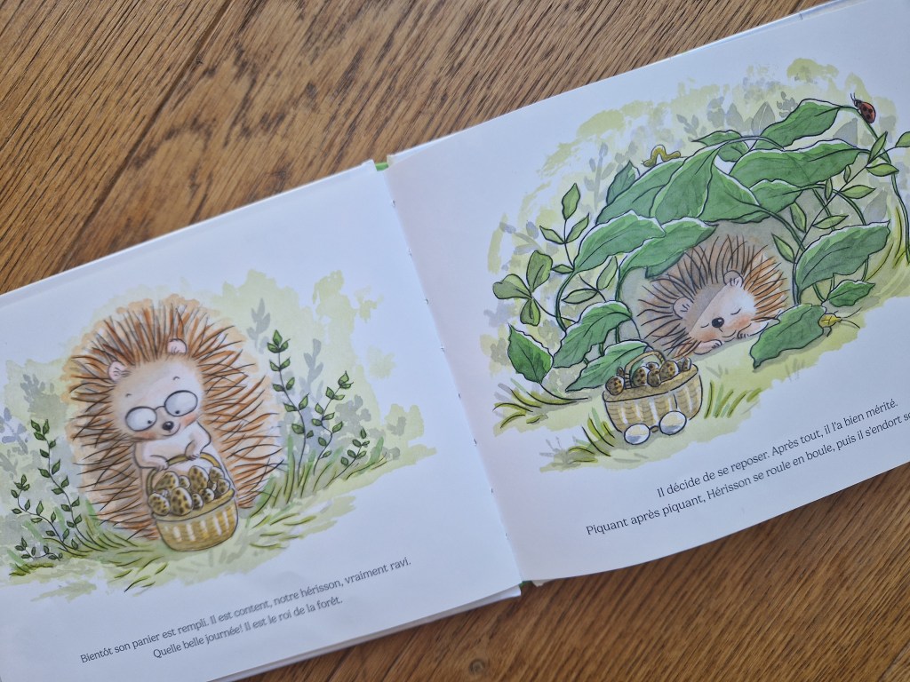 Les illustrations toutes douces d’Émilie Michaud sont tout simplement charmantes et rendent la forêt rassurante. On adore aussi la bouille de ce petit hérisson désarçonné. Le récit, lui, est rythmé par les rimes et les répétitions, ce qui est particulièrement apprécié des plus petits.